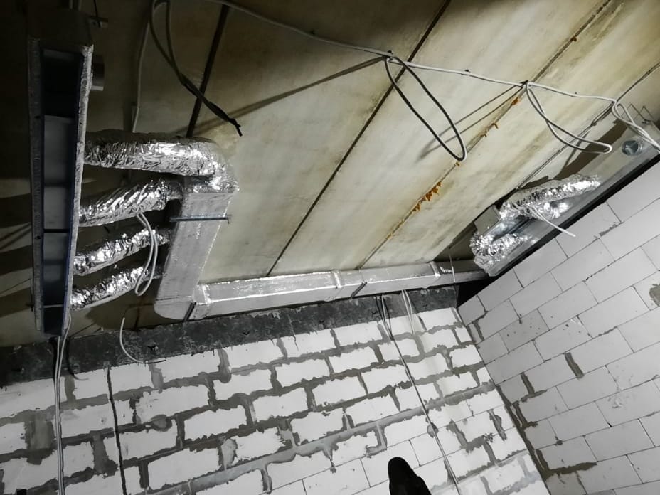 Данный объект находится в процессе монтажа, вентиляционную установку разместили на потолке в котельной.