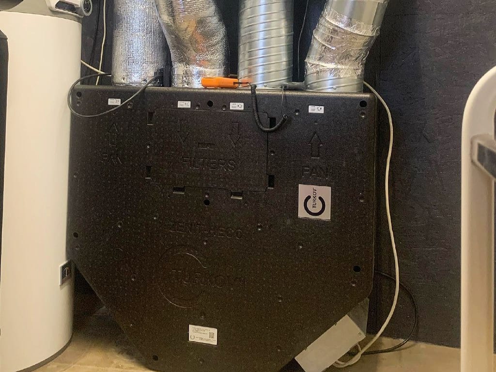 Вентиляцию проложили оцинкованными воздуховодами сечением ф200, ф160 и ф125 мм. Воздуховоды обклеены тепло-шумоизоляцией 10мм, для избегания образования конденсаты и снижения шума от потока воздуха.